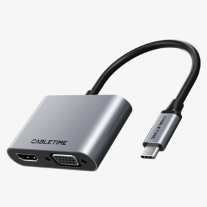 Type-C SKU: 2020121000008 CABLETIME CT-C160-PU31-CMHV-S0.15 Premium 2-in-1 USB type C to HDMI+VGA Adapter 4K /30HZ 65,00 ₾