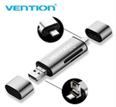 VENTION CLLH0 2-in-1 USB 3.0 A+C Card Reader(SD+TF) Gray Dual Drive Letter Aluminum Alloy Type
