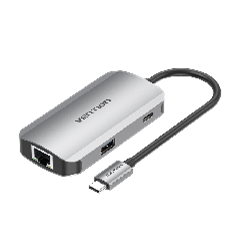 Type-C SKU: CNDHB VENTION CNDHB Type-C to HDMI/USB3.0*3/RJ45/TF/SD/PD Converter 0.15M Gray Metal Type 100,00 ₾